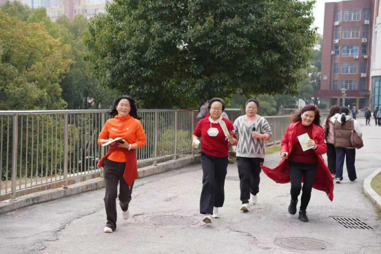 本次健身跑路线贯穿校园多个标志性地点,沿途设置“书香逐梦”“匠心育人”“向阳而行”“逐光启航”四个打卡点,寓意女教职工在教书育人、服务发展的征程中不断前行、追求卓越。来自各分工会的参赛教师精神饱满、步伐矫健,手持检录卡沿指定路线奋力奔跑,依次完成打卡任务,充分展现了我校女教职工团结奋进、积极向上的精神风貌。